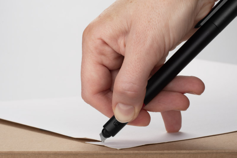 Značkovač SNIP je praktický nástroj 2 v 1, který kombinuje funkci značkovače a nože na dopisy a balíky. Na jedné straně je klasický popisovač se zarážkou a na druhé straně je výklopný nůž s pojistkou pro bezpečné použití. Možnost označení logem dále zvyšuje jeho potenciál jako reklamní pomůcky.