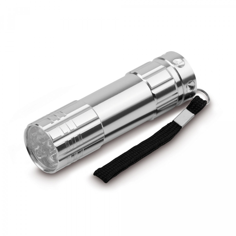 Kovová svítilna s 9 LED diodami (baterie nejsou součástí balení). Ø 26 x 92 mm