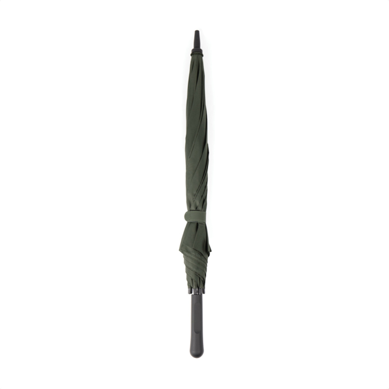 Moderní 23" deštník vyrobený z prémiového 190T pongee RPET. Kovová hůl, plně sklolaminátová kostra pro vysokovou odolnost v silném větru. Minimalistické madlo z ABS plastu s příjemnou pogumovanou úpravou. Automatické otevírání, manuální zavírání. Zapínací spona z ikonického Baltimore PU materiálu. Vyrobeno z recyklovaného polyesteru včetně skenovatelné složky AWARE™ garantující obsah recyklátu.