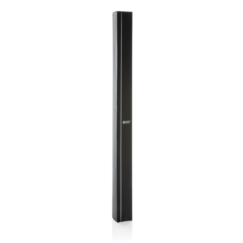 Spolehlivý velmi pevný deštník Tornado 23" s automatickým otevíráním a manuálním zavíráním. Kostra vyrobena z hliníku, žebra ze sklolaminátu odolná i proti silnému větru, pogumované madlo. Swiss Peak pouzdro pro pohodlné skladování. Vyrobeno z recyklovaného polyesteru 190T pongee včetně skenovatelné složky AWARE™ garantující obsah recyklátu. 2 % z výnosů z každého prodaného kusu je přispěno na iniciativu Water.org. Baleno v FSC dárkové krabičce Swiss Peak.