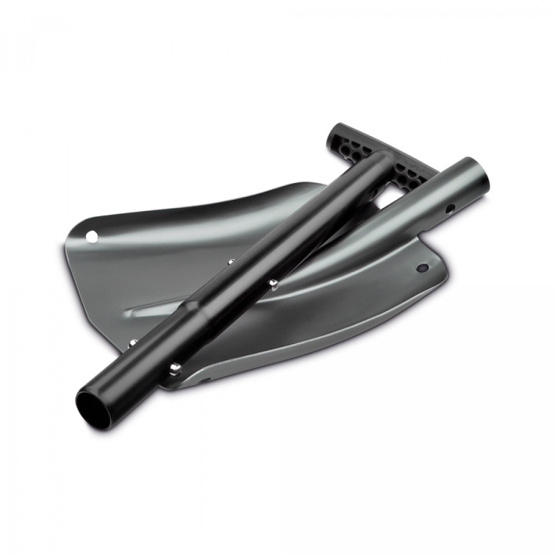 Kovová skládací lopata s hliníkovou čepelí. Lopata je ve tvaru "T" a vyjímatelná ve dvou zónách. Tvar rukojeti je ergonomický. 820 x 210 mm | Složená: 650 x 210 mm