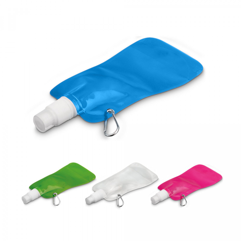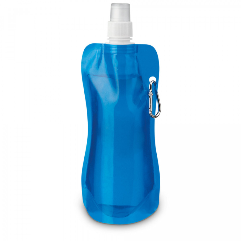 Sportovní skládací láhev z plastu s hliníkovou karabinou. Objem 460 ml. 110 x 218 x 640 mm