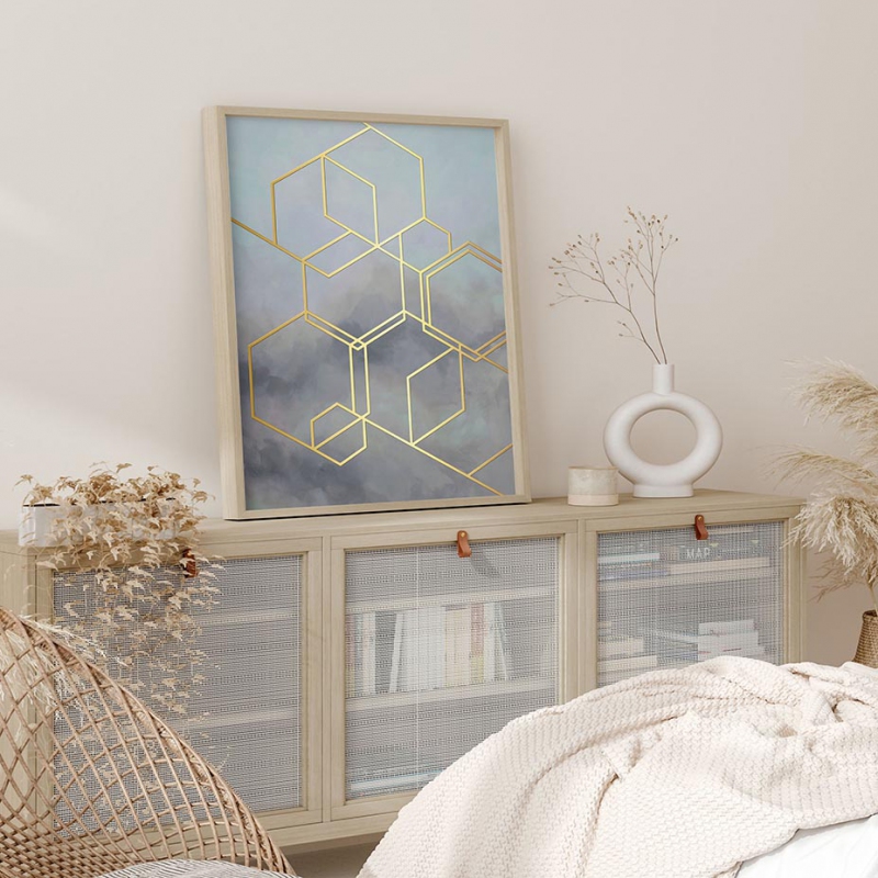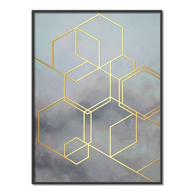 Abstraktní šestiúhelníkový akvarel 2 3D Zlatý Plakát