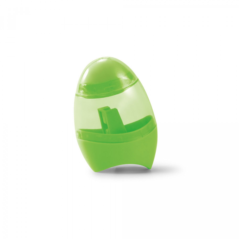 Ořezávátko 2 v 1 v PS s průhledným ložiskem a gumou s víčkem. 41 x 60 x 23 mm