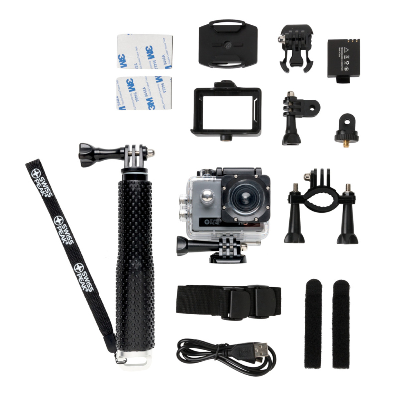 Akční fotoaparát s rozlišením Full HD (1 280 x 720 pixelů) s širokoúhlým displejem a 120stupňovým zobrazením pro dokonalá videa a fotky z vašich outdoorových aktivit. Včetně 650mAh baterie pro použití po dobu až 1 hodiny na jedno nabití. Včetně super silné ABS selfie tyče pro ještě lepší videa a fotografie. Zabalena v cestovním pouzdře Swiss Peak, takže si můžete svůj fotoaparát vzít kamkoli s sebou. Včetně 11 ks příslušenství.