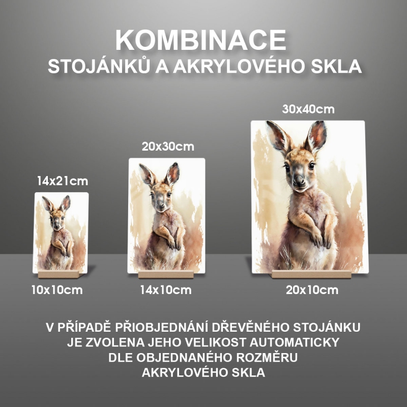 V případě přiobjednání dřevěného stojánku je zvolena jeho velikost automaticky dle objednaného rozměru akrylového skla viz produktové foto.