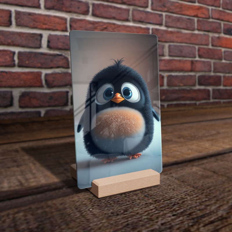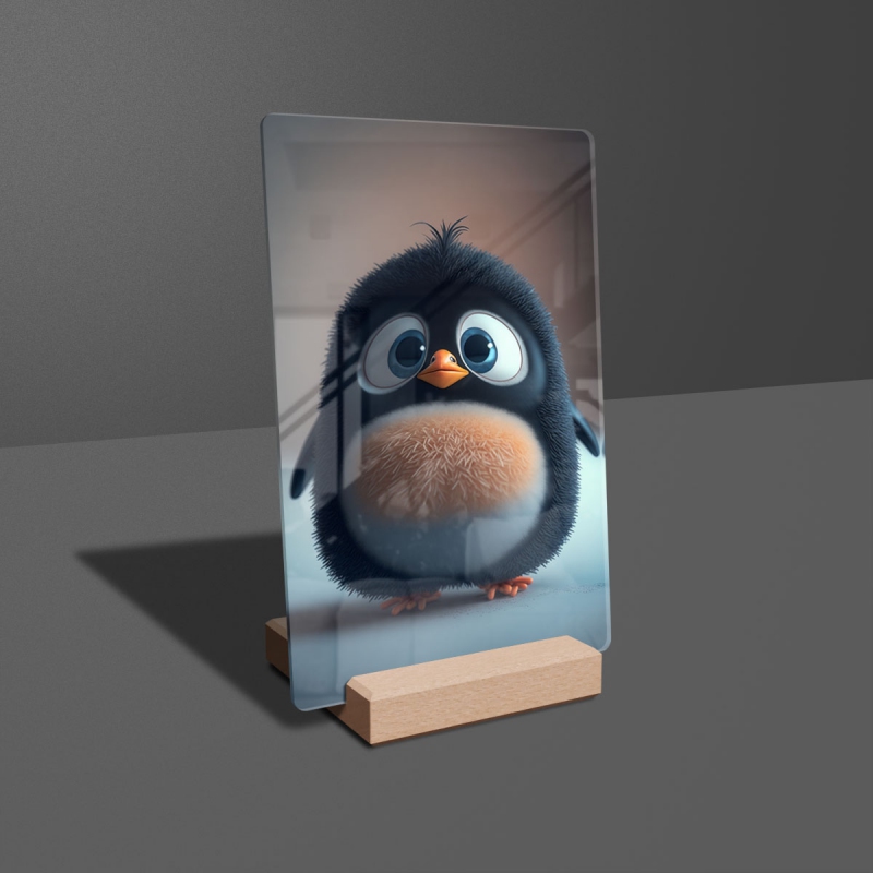 Na produktovém fotu vyobrazena nejoblíbenější varianta akrylového skla 14x21/21x14cm a dřevěný stojánek 10x10cm.