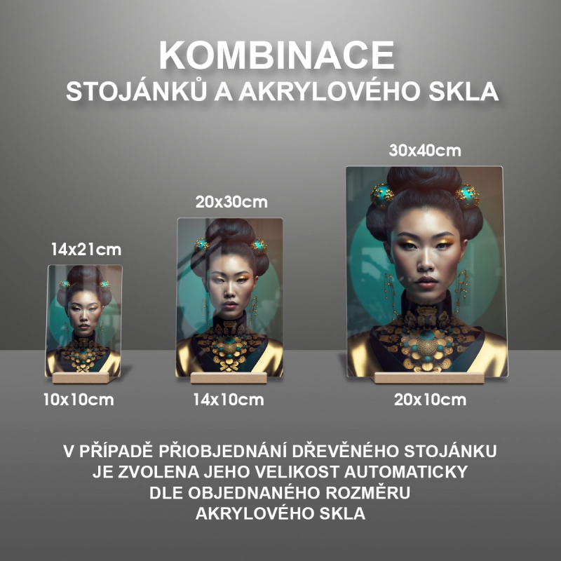 V případě přiobjednání dřevěného stojánku je zvolena jeho velikost automaticky dle objednaného rozměru akrylového skla viz produktové foto.
