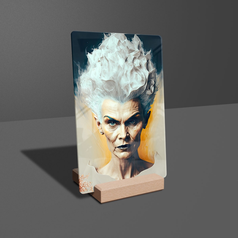 Na produktovém fotu vyobrazena nejoblíbenější varianta akrylového skla 14x21/21x14cm a dřevěný stojánek 10x10cm.