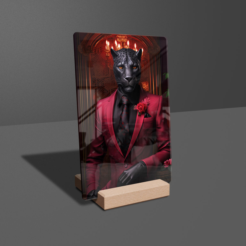 Akrylové sklo černý panter v červeném obleku