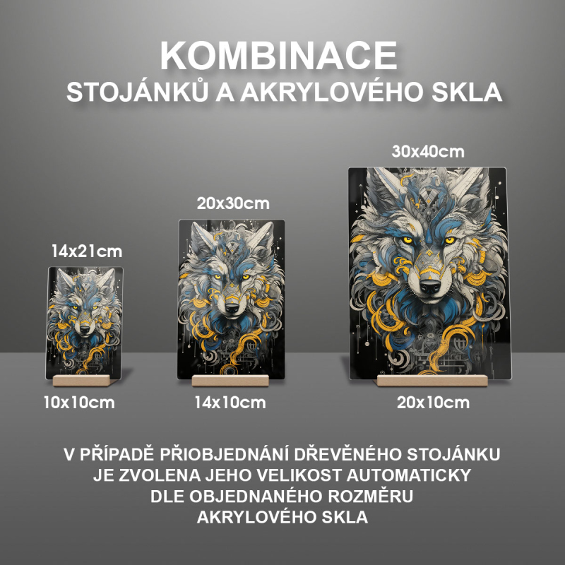 V případě přiobjednání dřevěného stojánku je zvolena jeho velikost automaticky dle objednaného rozměru akrylového skla viz produktové foto.