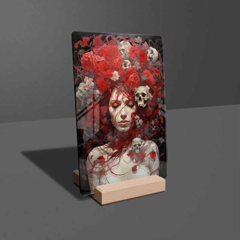 Akrylové sklo dívka s květinami a lebkami
