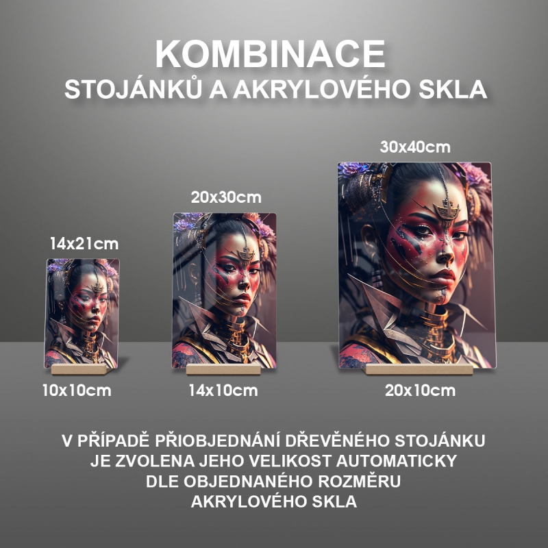 V případě přiobjednání dřevěného stojánku je zvolena jeho velikost automaticky dle objednaného rozměru akrylového skla viz produktové foto.
