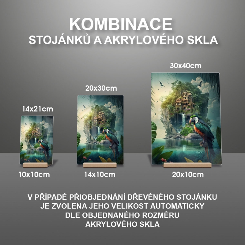 V případě přiobjednání dřevěného stojánku je zvolena jeho velikost automaticky dle objednaného rozměru akrylového skla viz produktové foto.