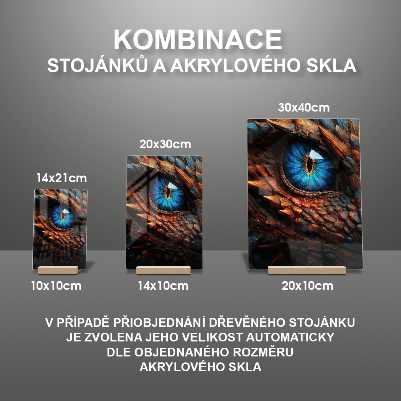 V případě přiobjednání dřevěného stojánku je zvolena jeho velikost automaticky dle objednaného rozměru akrylového skla viz produktové foto.