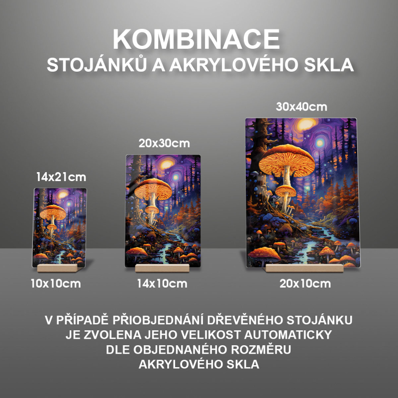 V případě přiobjednání dřevěného stojánku je zvolena jeho velikost automaticky dle objednaného rozměru akrylového skla viz produktové foto.