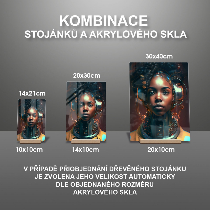V případě přiobjednání dřevěného stojánku je zvolena jeho velikost automaticky dle objednaného rozměru akrylového skla viz produktové foto.