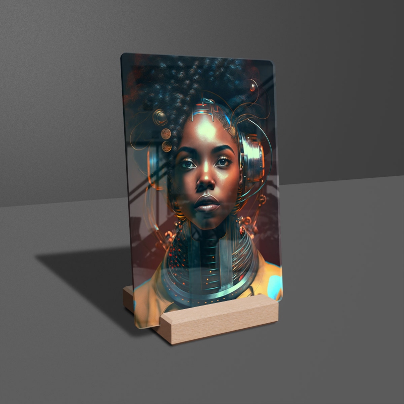 Na produktovém fotu vyobrazena nejoblíbenější varianta akrylového skla 14x21/21x14cm a dřevěný stojánek 10x10cm.