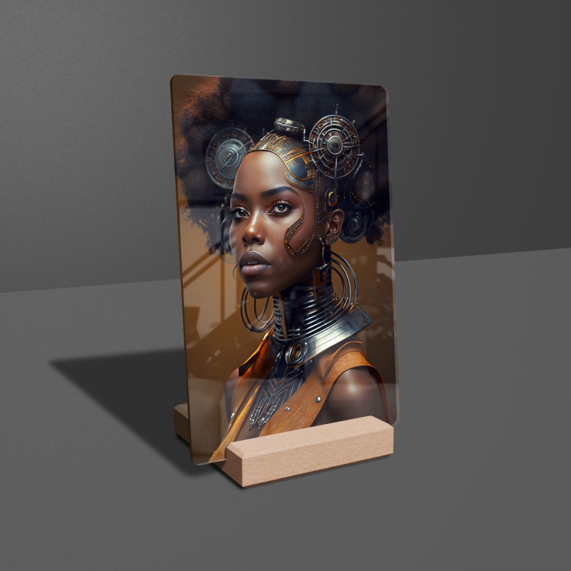 Na produktovém fotu vyobrazena nejoblíbenější varianta akrylového skla 14x21/21x14cm a dřevěný stojánek 10x10cm.