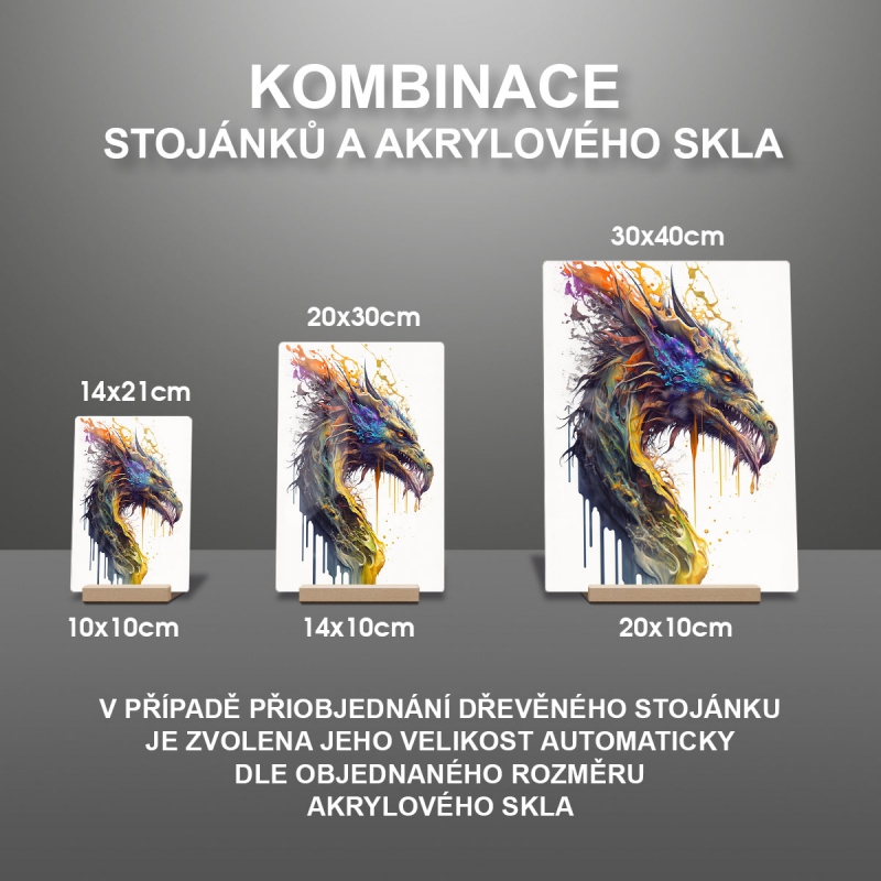 V případě přiobjednání dřevěného stojánku je zvolena jeho velikost automaticky dle objednaného rozměru akrylového skla viz produktové foto.