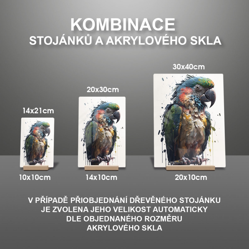 V případě přiobjednání dřevěného stojánku je zvolena jeho velikost automaticky dle objednaného rozměru akrylového skla viz produktové foto.