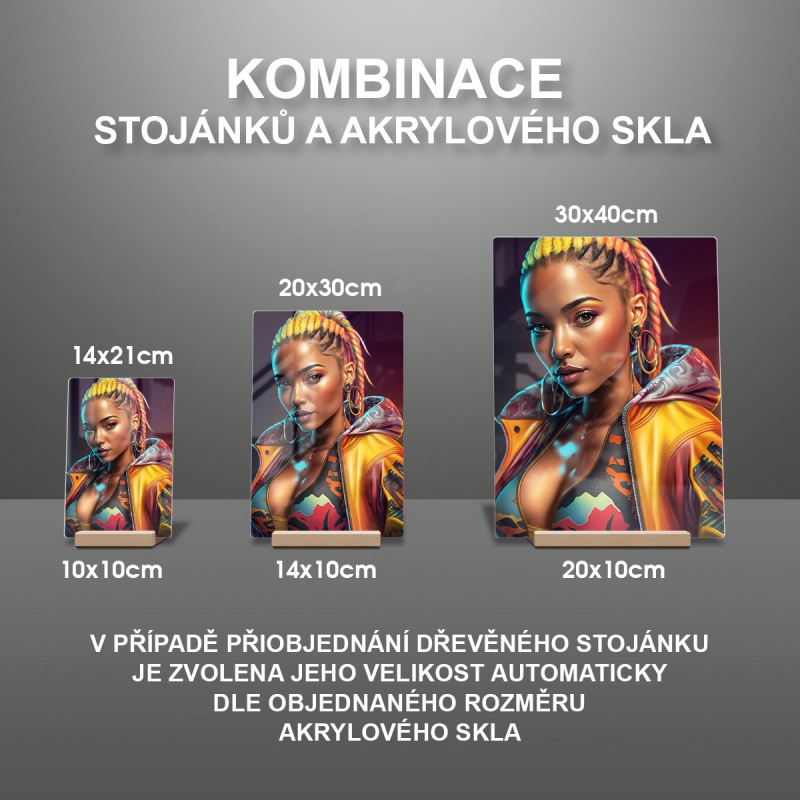 V případě přiobjednání dřevěného stojánku je zvolena jeho velikost automaticky dle objednaného rozměru akrylového skla viz produktové foto.