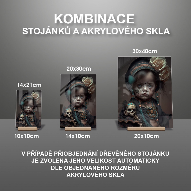 V případě přiobjednání dřevěného stojánku je zvolena jeho velikost automaticky dle objednaného rozměru akrylového skla viz produktové foto.