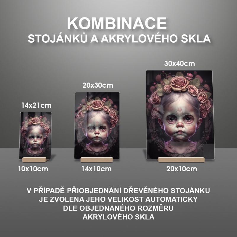 V případě přiobjednání dřevěného stojánku je zvolena jeho velikost automaticky dle objednaného rozměru akrylového skla viz produktové foto.