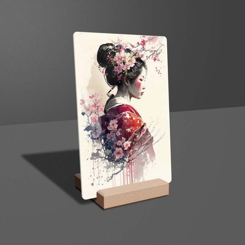 Akrylové sklo Japonská dívka se sakurami 2