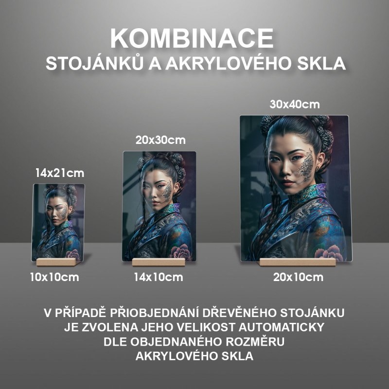 V případě přiobjednání dřevěného stojánku je zvolena jeho velikost automaticky dle objednaného rozměru akrylového skla viz produktové foto.
