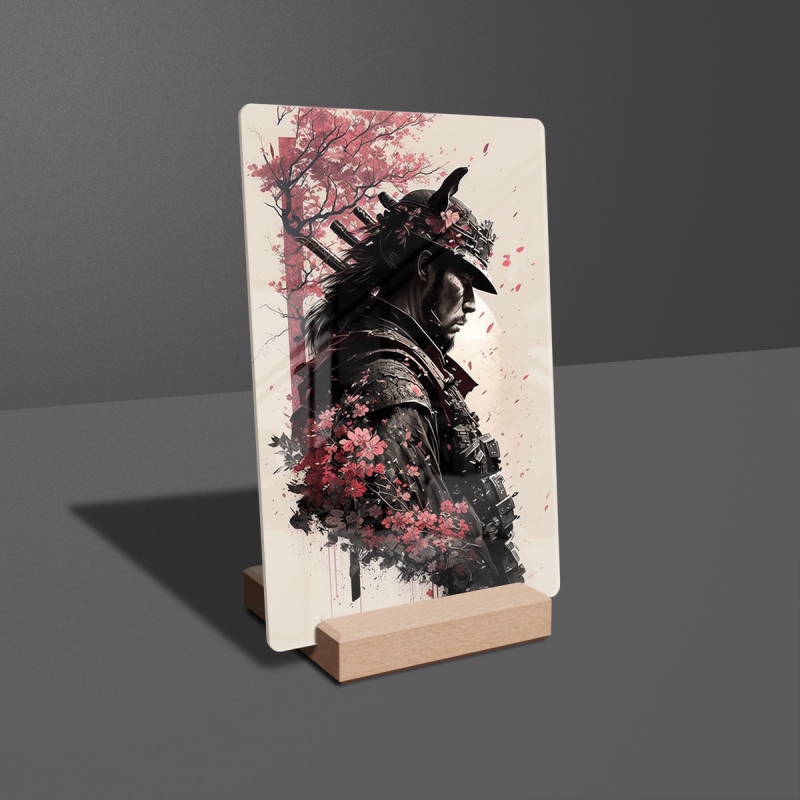 Na produktovém fotu vyobrazena nejoblíbenější varianta akrylového skla 14x21/21x14cm a dřevěný stojánek 10x10cm.
