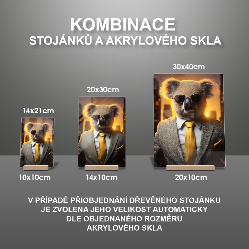 V případě přiobjednání dřevěného stojánku je zvolena jeho velikost automaticky dle objednaného rozměru akrylového skla viz produktové foto.