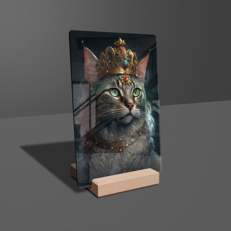 Na produktovém fotu vyobrazena nejoblíbenější varianta akrylového skla 14x21/21x14cm a dřevěný stojánek 10x10cm.