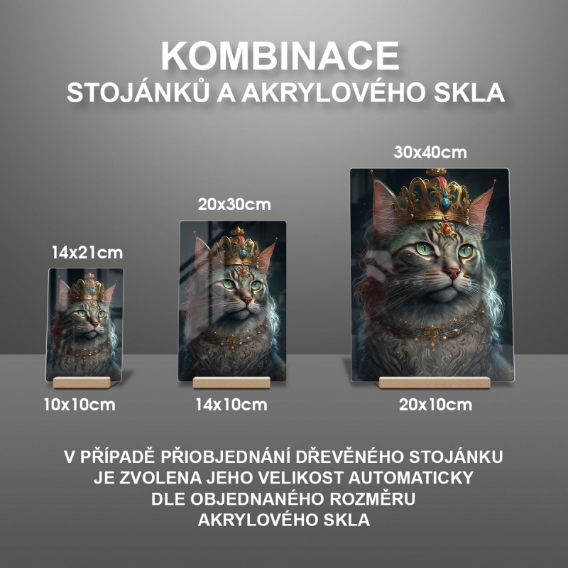 V případě přiobjednání dřevěného stojánku je zvolena jeho velikost automaticky dle objednaného rozměru akrylového skla viz produktové foto.
