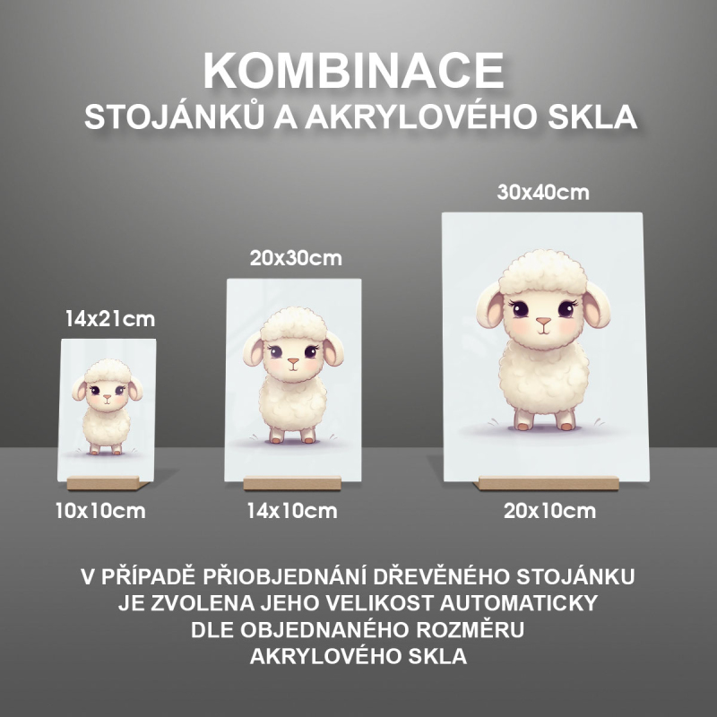 V případě přiobjednání dřevěného stojánku je zvolena jeho velikost automaticky dle objednaného rozměru akrylového skla viz produktové foto.