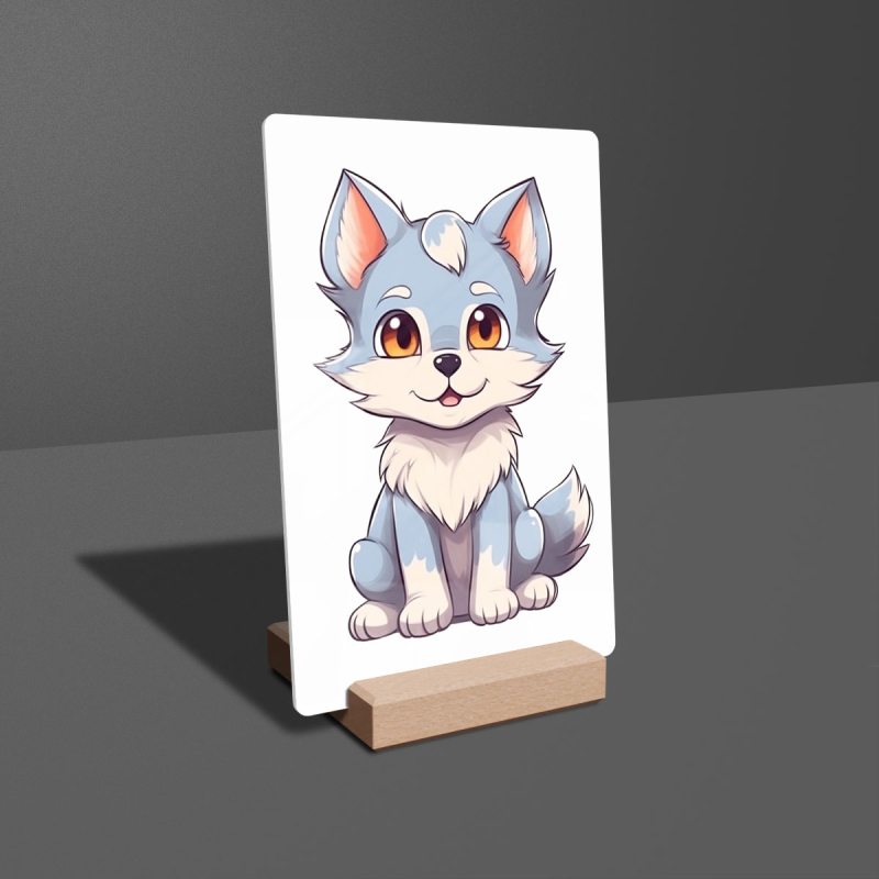 Na produktovém fotu vyobrazena nejoblíbenější varianta akrylového skla 14x21/21x14cm a dřevěný stojánek 10x10cm.