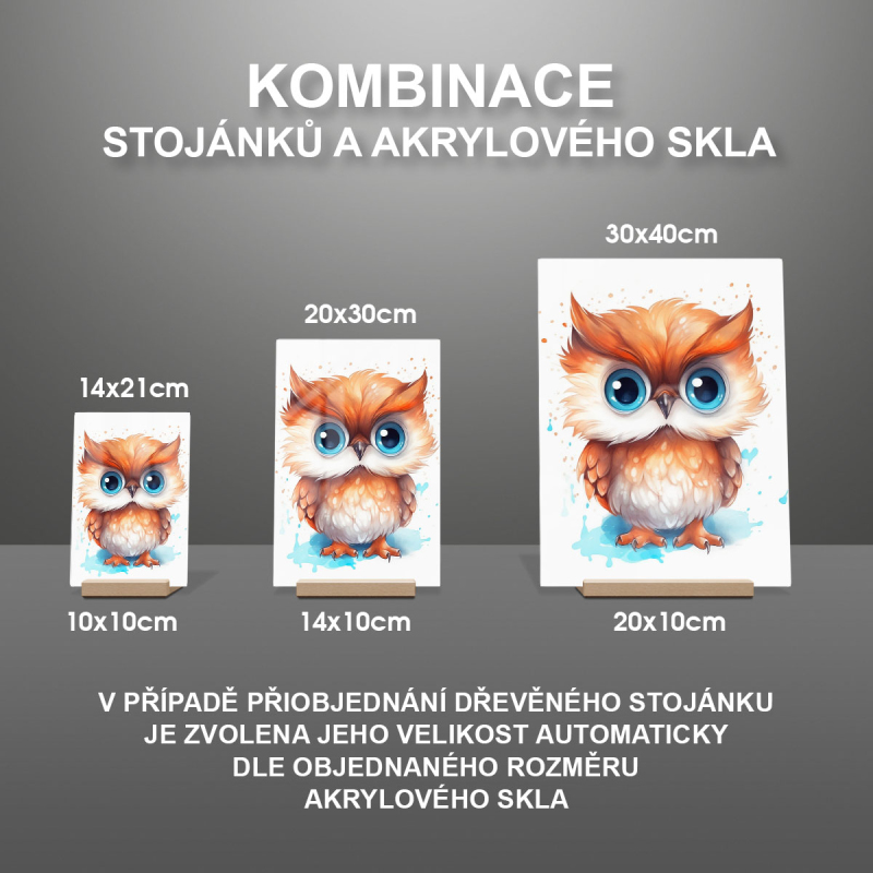 V případě přiobjednání dřevěného stojánku je zvolena jeho velikost automaticky dle objednaného rozměru akrylového skla viz produktové foto.