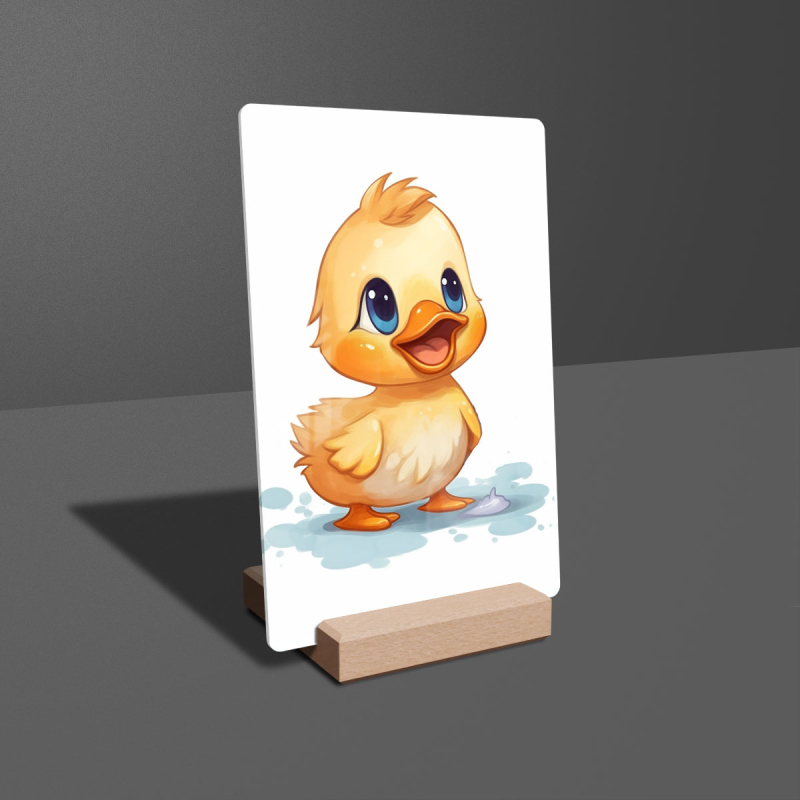 Na produktovém fotu vyobrazena nejoblíbenější varianta akrylového skla 14x21/21x14cm a dřevěný stojánek 10x10cm.
