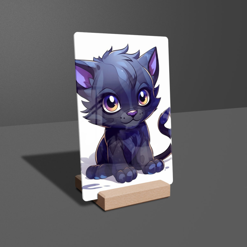 Na produktovém fotu vyobrazena nejoblíbenější varianta akrylového skla 14x21/21x14cm a dřevěný stojánek 10x10cm.