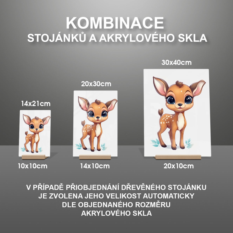 V případě přiobjednání dřevěného stojánku je zvolena jeho velikost automaticky dle objednaného rozměru akrylového skla viz produktové foto.