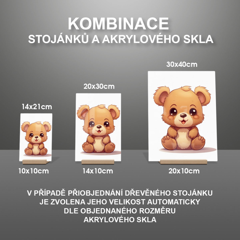 V případě přiobjednání dřevěného stojánku je zvolena jeho velikost automaticky dle objednaného rozměru akrylového skla viz produktové foto.