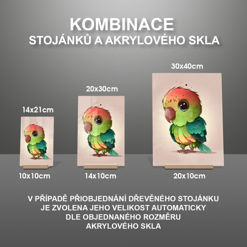 V případě přiobjednání dřevěného stojánku je zvolena jeho velikost automaticky dle objednaného rozměru akrylového skla viz produktové foto.