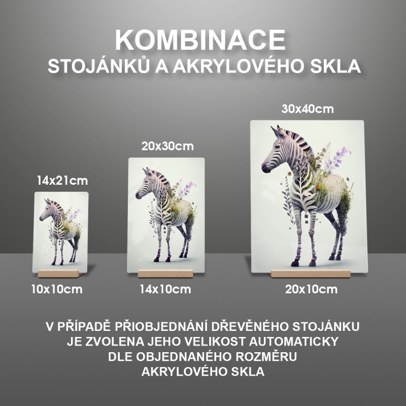 V případě přiobjednání dřevěného stojánku je zvolena jeho velikost automaticky dle objednaného rozměru akrylového skla viz produktové foto.
