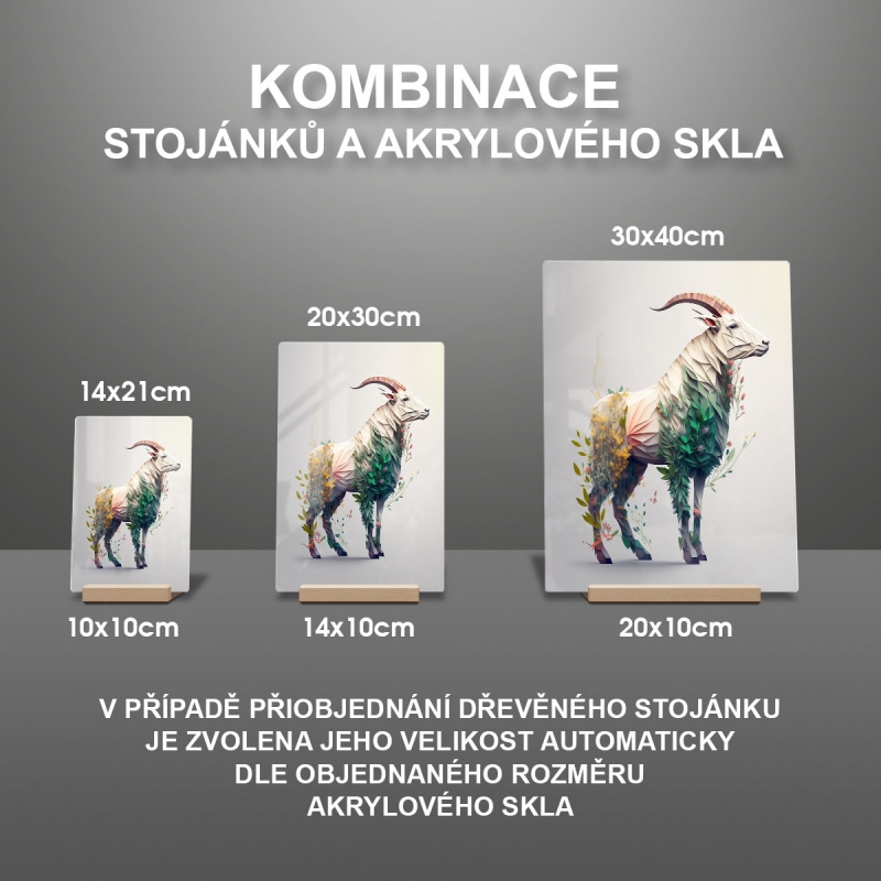 V případě přiobjednání dřevěného stojánku je zvolena jeho velikost automaticky dle objednaného rozměru akrylového skla viz produktové foto.