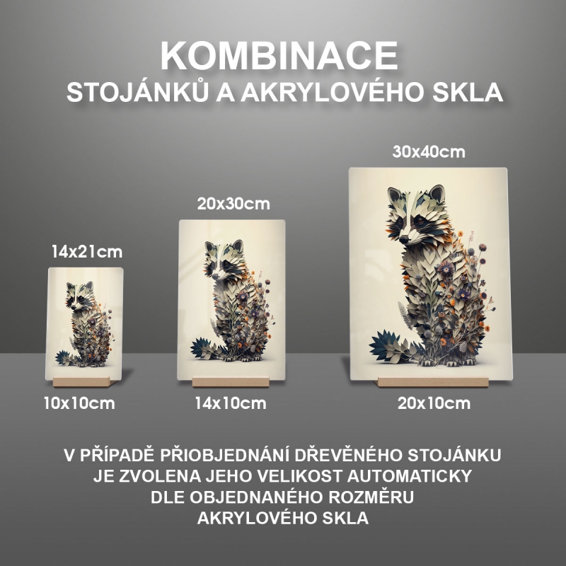 V případě přiobjednání dřevěného stojánku je zvolena jeho velikost automaticky dle objednaného rozměru akrylového skla viz produktové foto.
