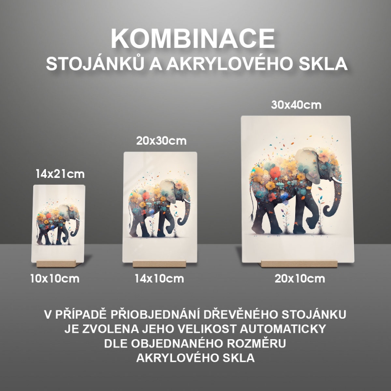 V případě přiobjednání dřevěného stojánku je zvolena jeho velikost automaticky dle objednaného rozměru akrylového skla viz produktové foto.