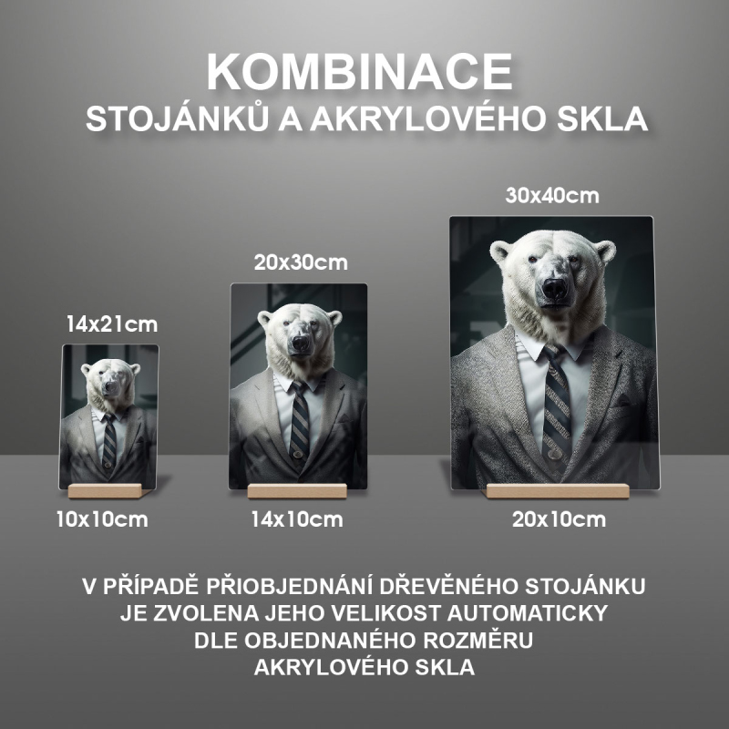 V případě přiobjednání dřevěného stojánku je zvolena jeho velikost automaticky dle objednaného rozměru akrylového skla viz produktové foto.