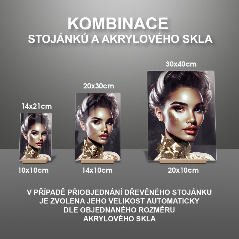 V případě přiobjednání dřevěného stojánku je zvolena jeho velikost automaticky dle objednaného rozměru akrylového skla viz produktové foto.