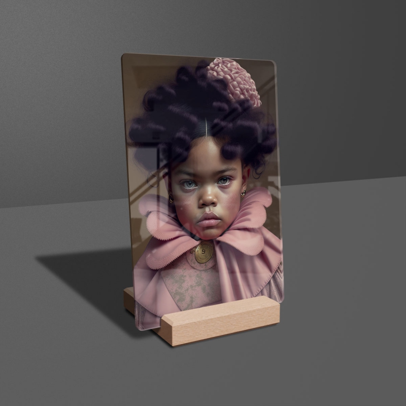 Na produktovém fotu vyobrazena nejoblíbenější varianta akrylového skla 14x21/21x14cm a dřevěný stojánek 10x10cm.