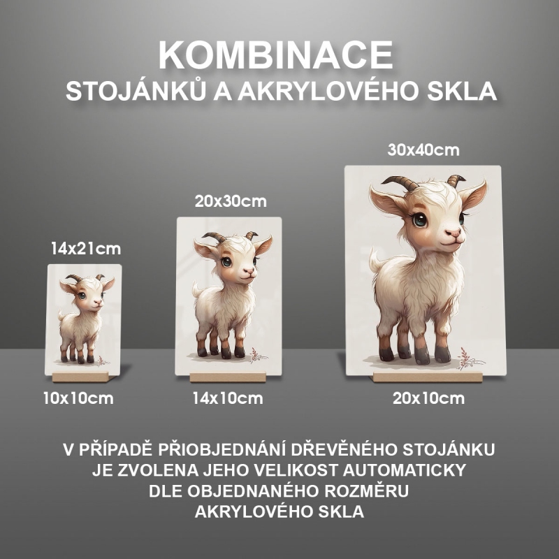 V případě přiobjednání dřevěného stojánku je zvolena jeho velikost automaticky dle objednaného rozměru akrylového skla viz produktové foto.